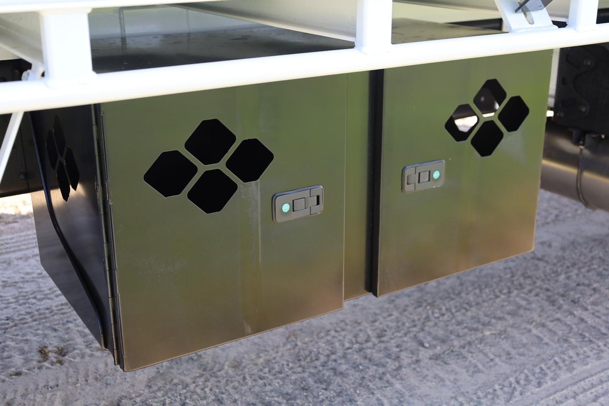 - Chassis mounted double door dog box fitted (1000x500x500mm)