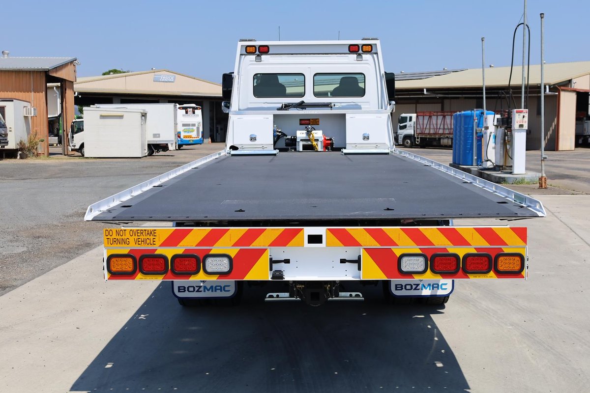 Bozmac Body measures 7100mm Long (useable) deck with Remote Control, Container Pins, Container Pusher, Winch, Quicklash, 9 Tonne Retractable Towbar, 2 x 1200mm Stainless Toolboxes, Rotating Beacons and Water tank