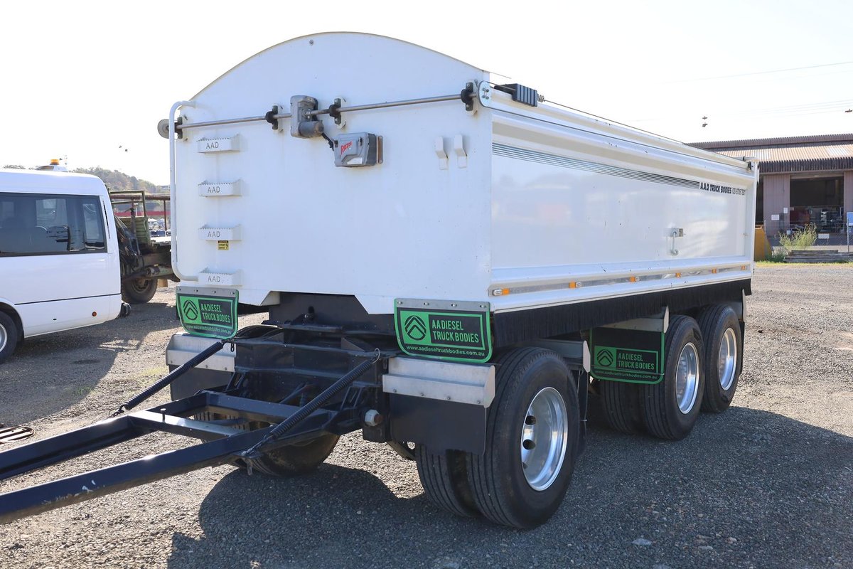 - Heavy duty headboard with AAD Electric PVC Tarp & Tarp protector and ladder at front AAD full length pressed top rails and splash guards.